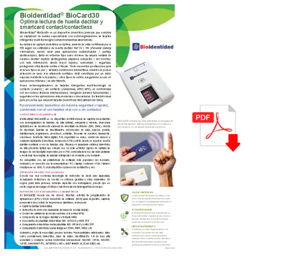 Bioidentidad BioCard30 es un dispositivo biométrico especializado que combina un capturador de huellas óptico certificado por el FBI (FAP 30) con dos lectores/grabadores de tarjetas inteligentes multi-tecnología.